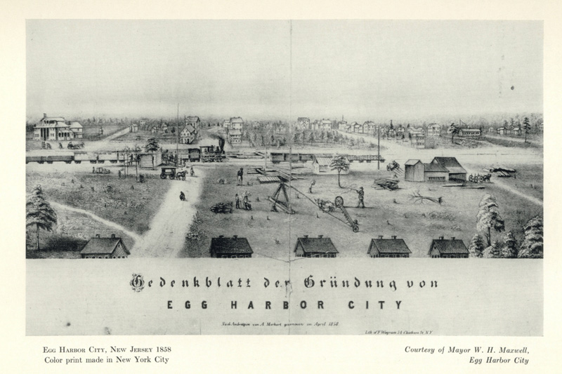 20 In the Municipal Building there is a little pamphlet Plan zur Ausführung des Hafenbaues im Flussdistrikt von Egg Harbor City . . . und Gründung einer Dampfschifflinie zwischen Egg Harbor City und New York, (Egg Harbor City, November 1859, Gedruckt bei Louis Bullinger), 16 pp.