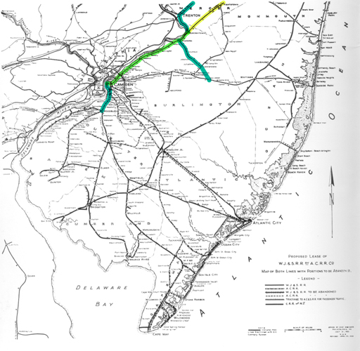 South Jersey Rails 1838Many thanks to the West Jersey Chapter of the National Railway Historical Society for granting permission to use the base map, and to Paul W. Schopp for providing detailed information, advice and encouragement. Last updated: 2005 Seventh Month, 2nd. |