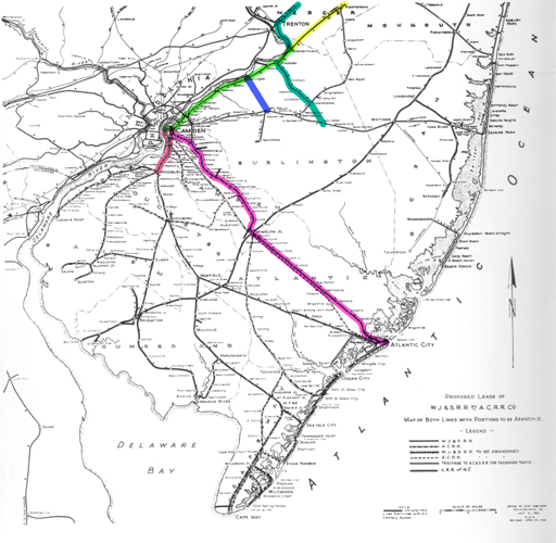 South Jersey Rails 1857Many thanks to the West Jersey Chapter of the National Railway Historical Society for granting permission to use the base map, and to Paul W. Schopp for providing detailed information, advice and encouragement. Last updated: 2005 Seventh Month, 2nd. |