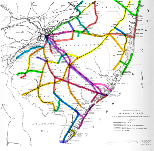 * see description of complications at the page for 1890. Many thanks to the West Jersey Chapter of the National Railway Historical Society for granting permission to use the base map, and to Paul W. Schopp for providing detailed information, advice and encouragement. Last updated: 2005 Seventh Month, 2nd. |