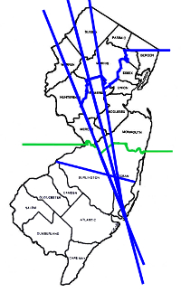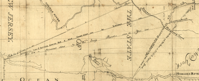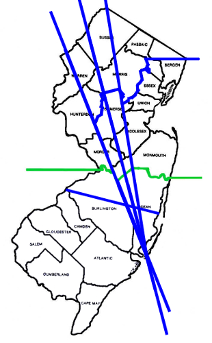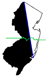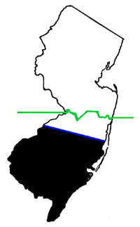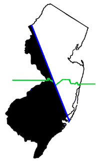 Where was the West Jersey/East Jersey line?Determination of an exact location for a dividing line was long a matter of dispute, so the better question is "Where were the LINES." A fuller explanation is given below, but for a quick visual introduction (the green line demarcates the "lower eight counties" definition of South Jersey):